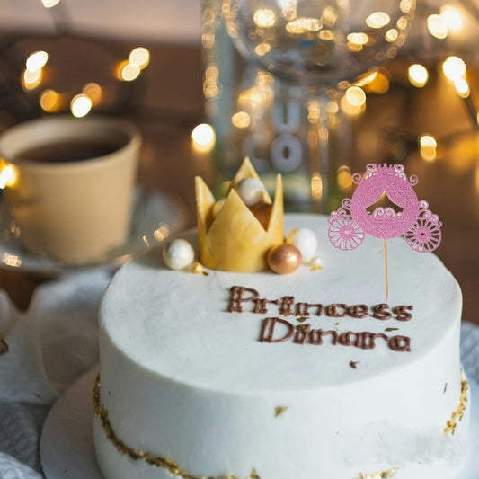 Topper Carruagem Princesa Rosa Brilhante 7,5x6,5cm