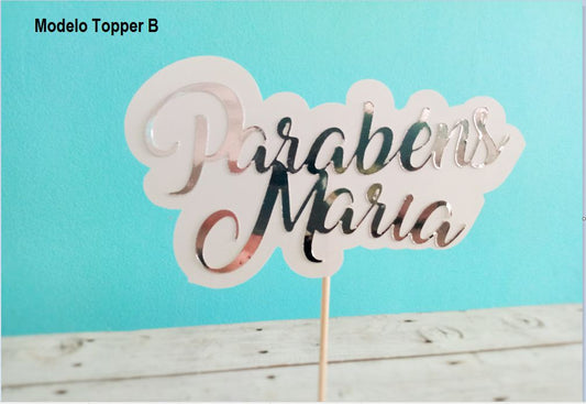 SweetArt Toppers "Parabéns" Prateado com Purpurinas