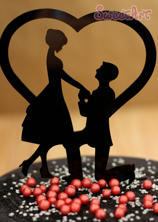 Topo de Bolo Acrílico Noivos com Coração Preto