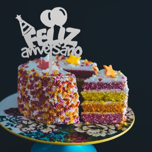 Topper Dourado Feliz Aniversário Balões 14,5cm
