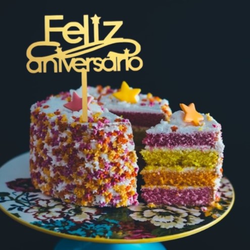Topper Dourado Feliz Aniversário Estrelas 17,3cm