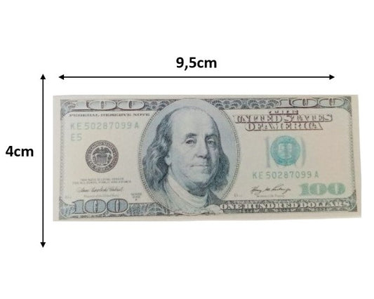 Notas de 100 Dólares Decorativas em Folha de Hóstia 10x4cm Conj 7