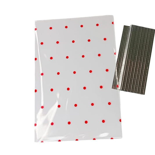 Saco Doces com Pontos Vermelhos 13x20cm Conj 50