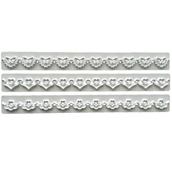 Este conjunto de cortadores tipo régua é perfeito para criar rendas e marcas de bordados nos seus bolos.