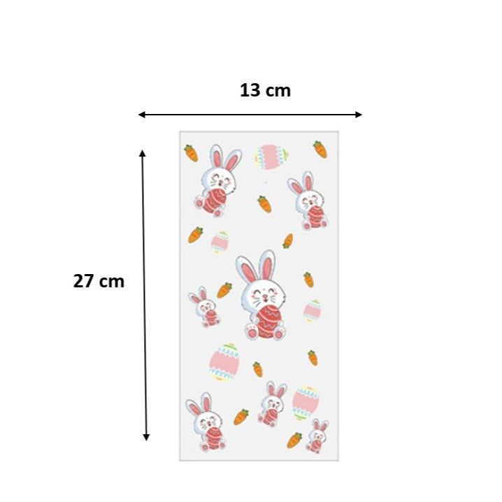Sacos de plásticos com motivo alusivos à Páscoa, ovos, coelho e cenouras. São perfeitos para embalar bolachas de, bombons, doces, gomas, chupas, e muito mais