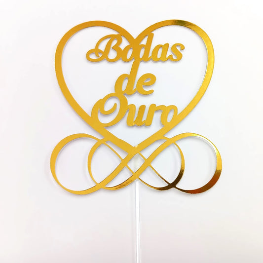 Topper Papel Dourado Bodas de Ouro 12x12cm
