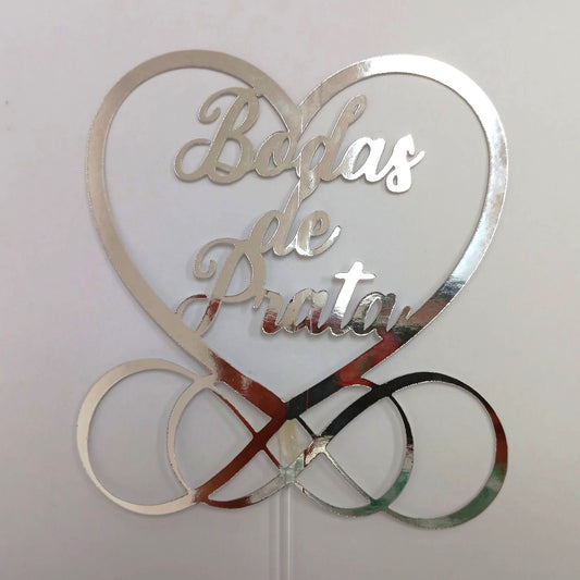 Topper Papel Prateado Bodas de Prata 12x12cm