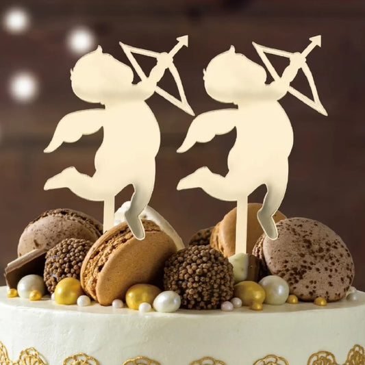 Topper Acrilico Dourado Cupido 11,7cm, conj 2