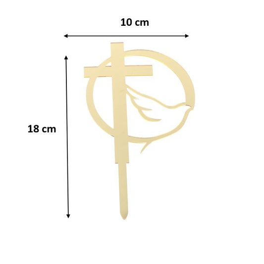 Topper Acrílico Cruz Dourada e Pomba 18cm