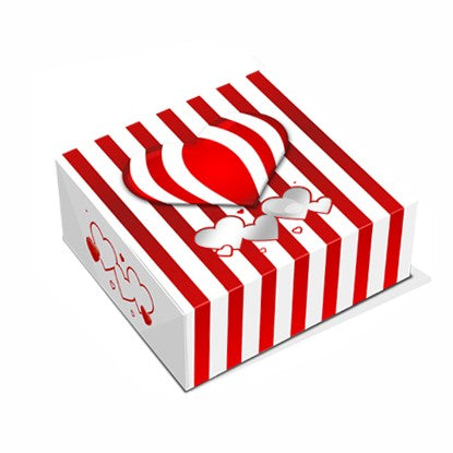 Caixa cartolina vermelha e branca com janela 14x13x5 cm