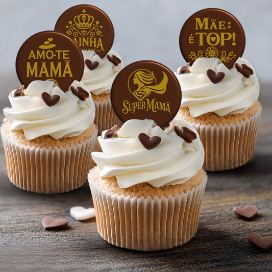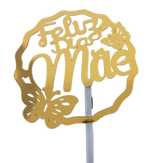 Topper Papel Dourado Feliz Dia Mãe 9,5 x 9,5cm